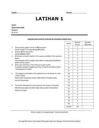 Pdf 1 Matematik Kertas 2 Dan 1 Markah Aziz Mamat Academia Edu